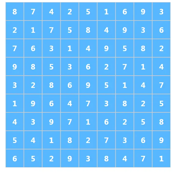 下面开始第一步,把数独的数据先准备好,数据是什么,大家都知道,就是像下面这样的数据!