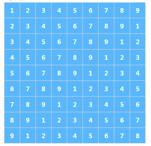 }大家也可以发现,这个数据,的每一行和每一列的数字都是不同样的!