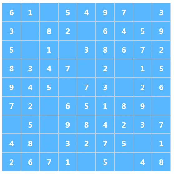 掏空单元格就是把一些格子随机设空,然后让玩数独的人。把这些单元格给填上!
