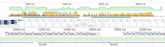 ,每次滚动事件都会消耗 19ms。如果我们要达到 60 fps 就只有 16ms 的渲染时间,这明显超出太多。