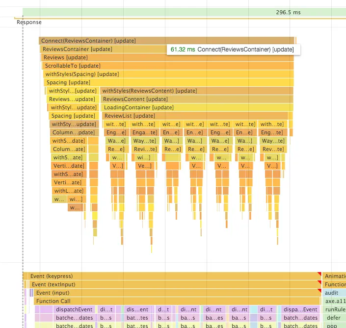 Redux-connected ReviewsContainer 重绘消耗 61.32ms