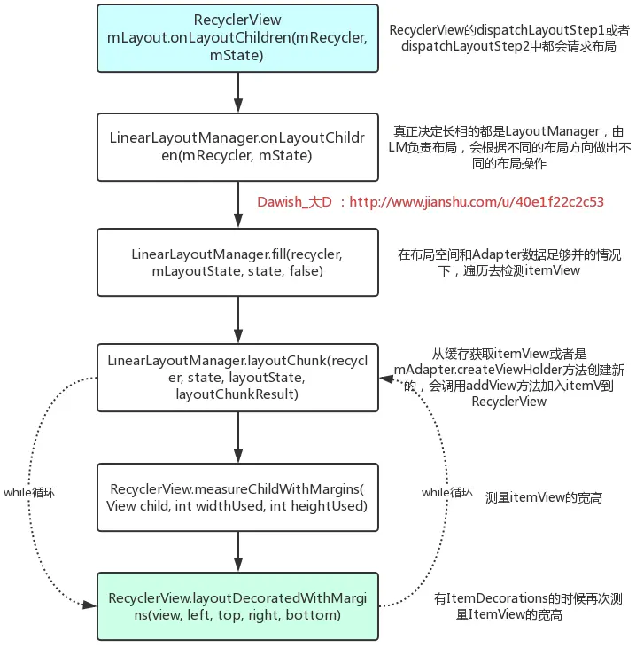 下图是LinearLayoutManager对循环布局所有的ItemView的流程图:
