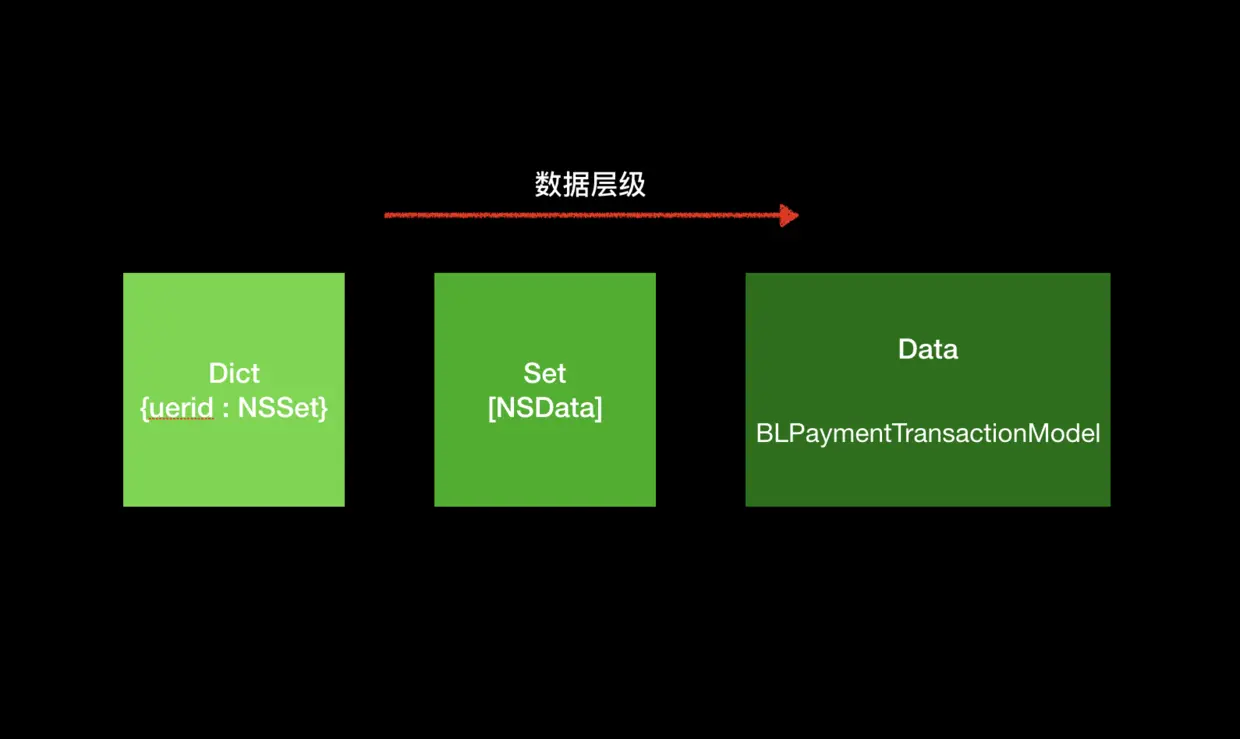 现在回到 keyChain 上来。每个 BLPaymentTransactionModel 对象归档成一个 NSData,多个 data 组成一个集合,再将这个集合归档,然后保存在一个以 userid 为 key 的字典中,然后再对字典进行归档,然后再保存到 keyChain 中。