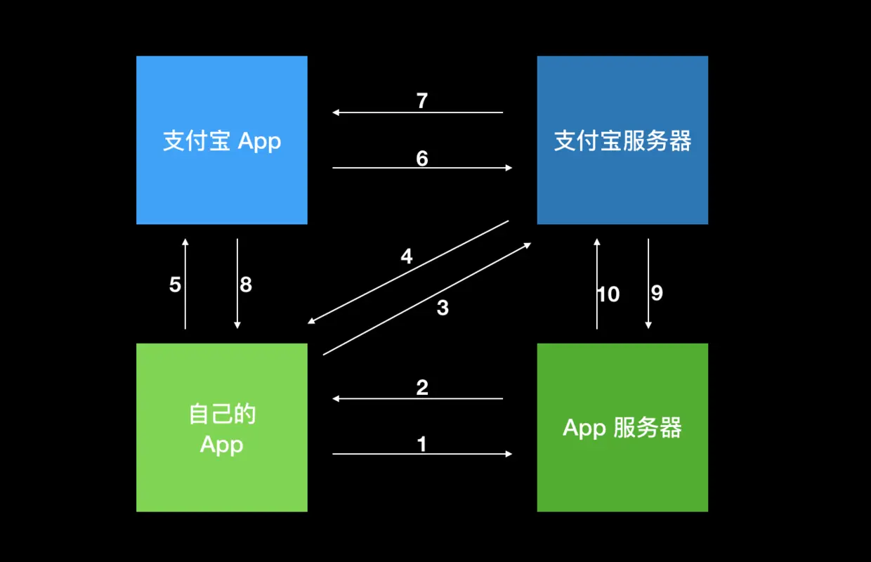 - (BOOL)application:(UIApplication *)application openURL:(NSURL *)url sourceApplication:(NSString *)sourceApplication annotation:(id)annotation方法处理支付宝的回调结果,对应的进行刷新 UI 等操作。第九步:支付宝服务器会回调我们的服务器并把收据传给我们服务器,如果我们的服务器没有确认已经收到支付宝的收据信息,那么支付宝服务器就会一直回调我们的服务器,只是回调时间间隔会越来越久。