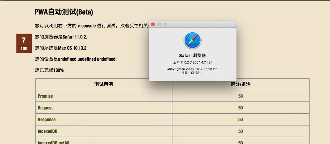 可以看到 Safari 已经对一些基础 api 开始进行支持了。