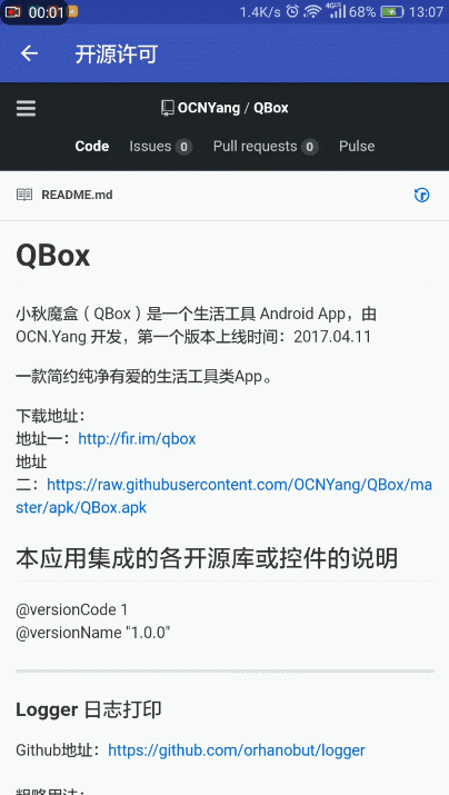 好了,对库就总结这么多吧。如果大家在玩“小秋魔盒”时遇到什么问题都可以在下方留言,如果对应用中的某个功能的实现效果有疑问也可以下方留言,如果我感觉有必要的话,会写一些相应的教程给大家。