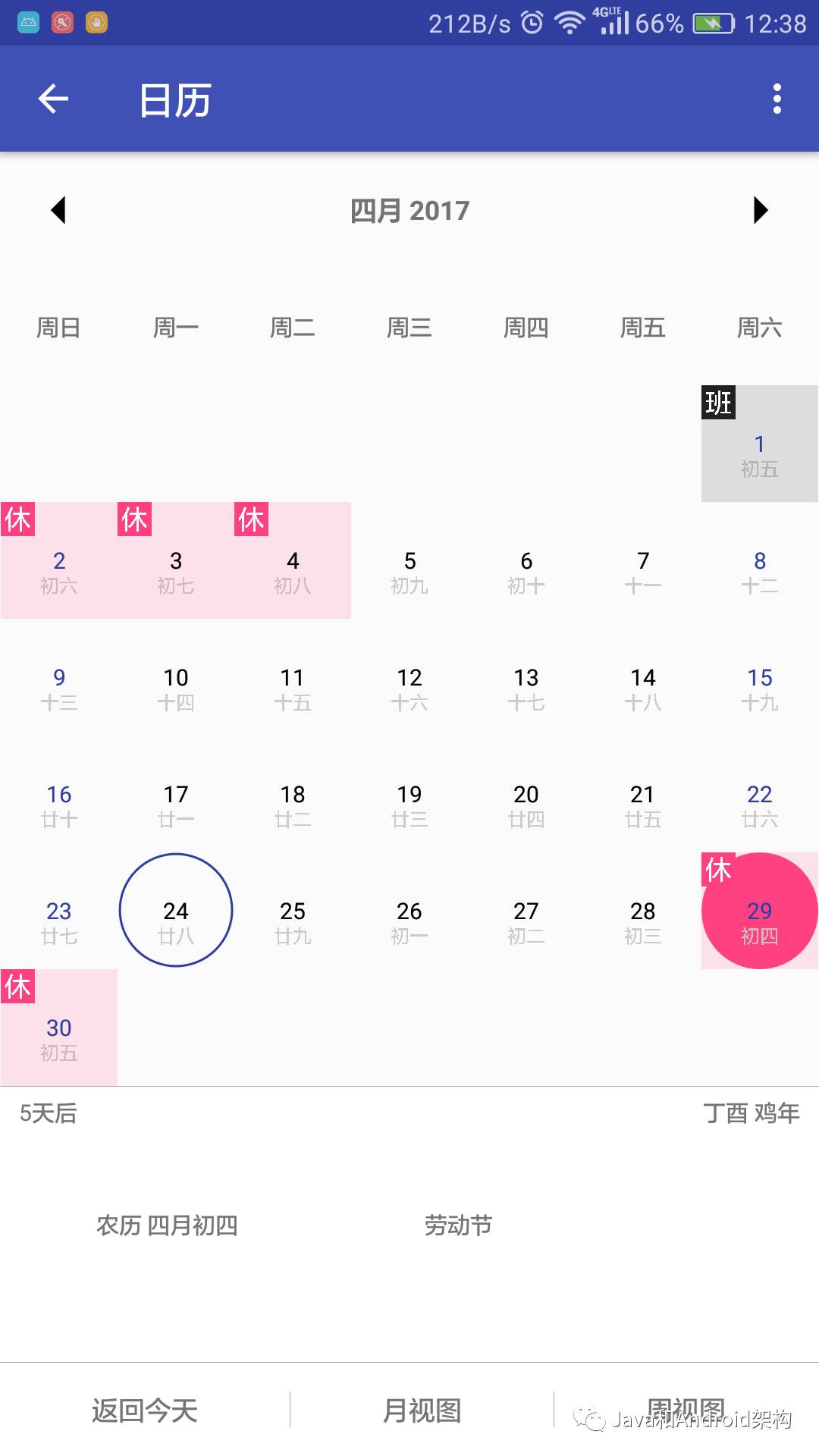 改造后支持农历和节假日查询的日历,很漂亮的一个日历控件,可拓展性也很不错。