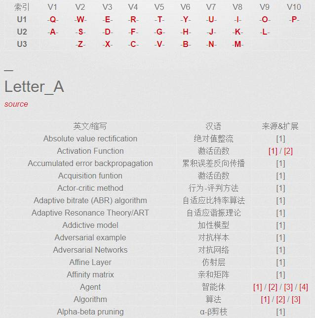 本词汇库目前拥有的专业词汇共计 760 个,主要为机器学习基础概念和术语,同时也是该项目的基本词汇。机器之心将继续完善术语的收录和扩展阅读的构建。