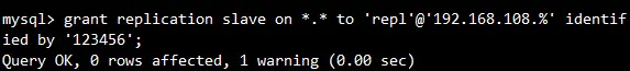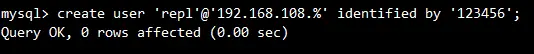 1. 在主机上创建创建用户主从复制的用户,如下所示: