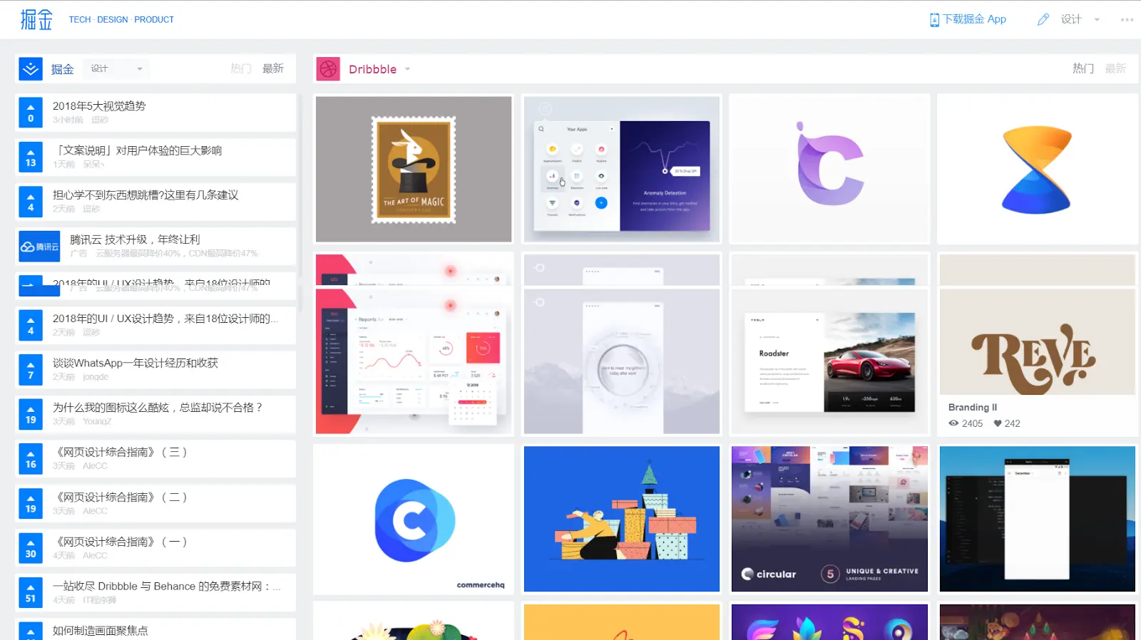 对了,虽然插件对于国外像 Dribbble、Product Hunt 等网站也进行了聚合,你大可不必担心在插件页面的载入速度,稀土团队对这些网站上的图片资源都做了相应的缓存优化,访问速度绝对不是问题。