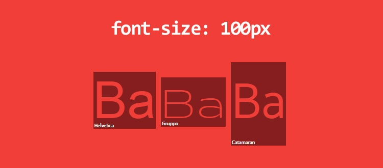 为什么 font-size: 100px 不能得到相同高度的元素呢?我测量了一下每个 span 的高度:Helvetica 115px,Gruppo 97px,Catamaran 164px。