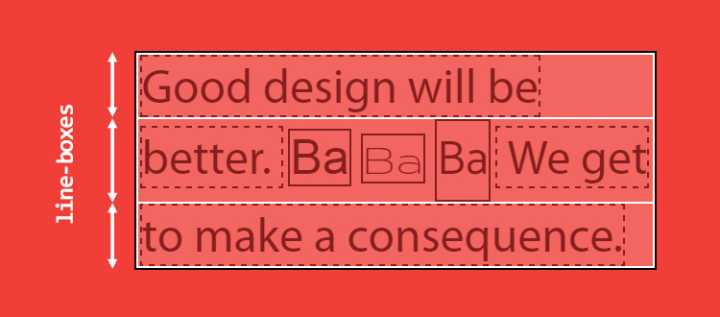 在继续深入之前,说点相关的知识。当 p 元素出现在屏幕上时,它可能包含了多行内容,每行内容由多个内联元素组成(内联标签或者是包含文本的匿名内联元素),每一行都叫做一个 line-box。line-box 的高度是由它所有子元素的高度计算得出的。浏览器会计算这一行里每个子元素的高度,再得出 line-box的高度(具体来说就是从子元素的最高点到最低点的高度),所以默认情况下,一个 line-box 总是有足够的高度来容纳它的子元素。