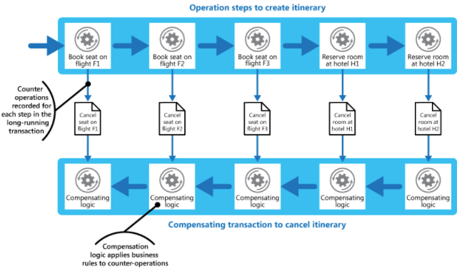 补偿交易,其核心思想是:针对每个操作,都要注册一个与其对应的补偿操作。一般来说操作本身和其补偿(撤销)操作会在一个事务里完成。
