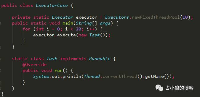 1、 Executors.newFixedThreadPool(10)初始化一个包含10个线程的线程池executor;