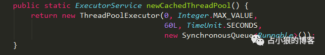 1、初始化一个可以缓存线程的线程池,默认缓存60s,线程池的线程数可达到Integer.MAX_VALUE,即2147483647,内部使用SynchronousQueue作为阻塞队列;