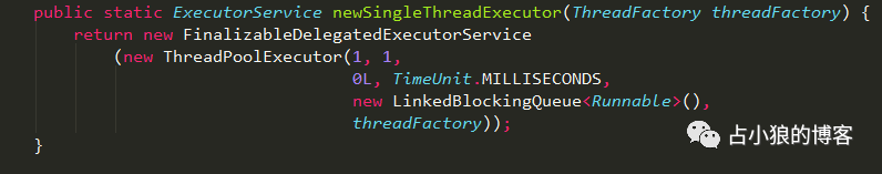 初始化的线程池中只有一个线程,如果该线程异常结束,会重新创建一个新的线程继续执行任务,唯一的线程可以保证所提交任务的顺序执行,内部使用LinkedBlockingQueue作为阻塞队列。