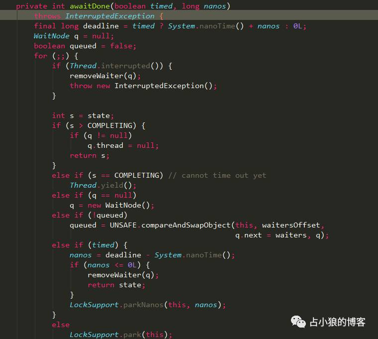 内部通过awaitDone方法对主线程进行阻塞,具体实现如下: