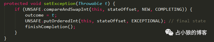 set和setException方法中,都会通过UnSAFE修改FutureTask的状态,并执行finishCompletion方法通知主线程任务已经执行完成;