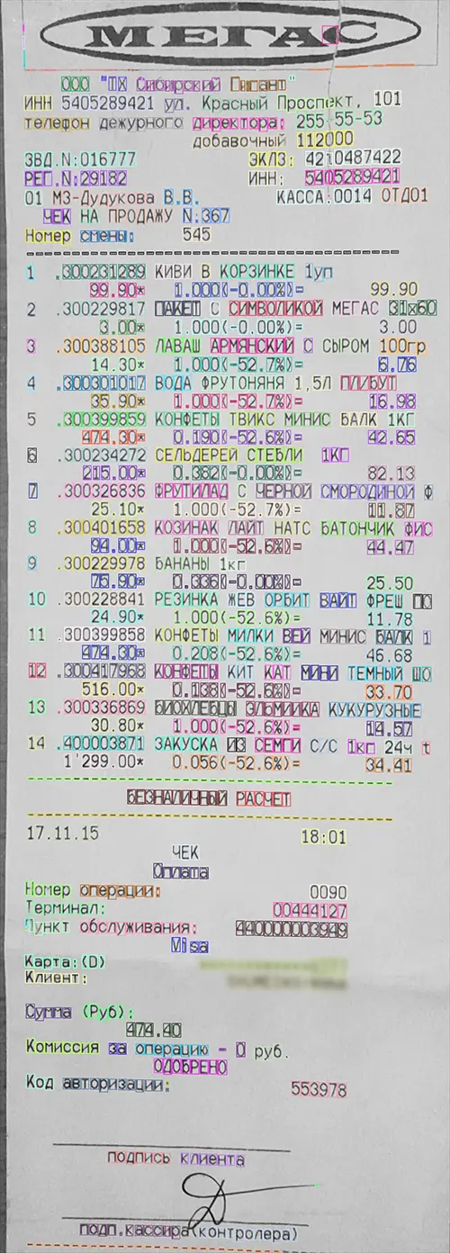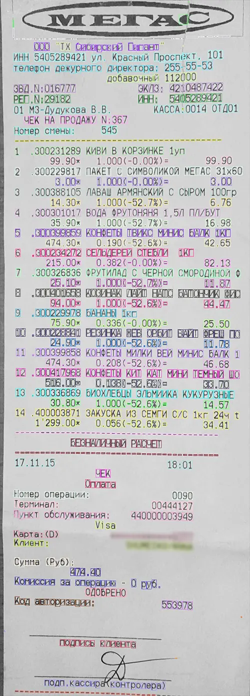 同时,机器学习(ML)和卷积神经网络(CNN)的快速发展也让文本识别出现了巨大的飞跃!我们在本文的研究中也将使用卷积神经网络CNN技术来识别零售店的纸质票据。为了方便演示,我们本次将仅采用俄语版的票据进行测试。
