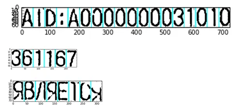 我们发现几乎所有票据都是相同宽度的文本,所以我们设法在收据上画出一个网格,并利用网格分割每个字符: