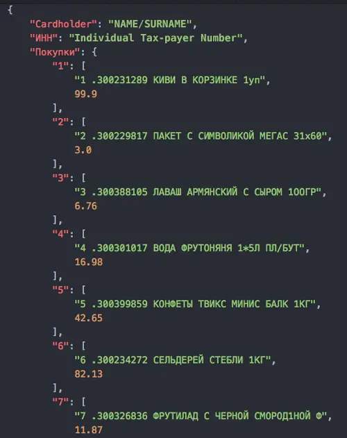 我们使用正则表达式来查找收据中购买情况。所有收据都有一个共通点:购买价格以XX.XX格式来撰写。因此,可以通过提取购买的行来提取相关信息。个人纳税号码是十位数,也可以通过正则表达式轻松获取。同样,也可以通过正则表达式找到NAME / SURNAME等信息。