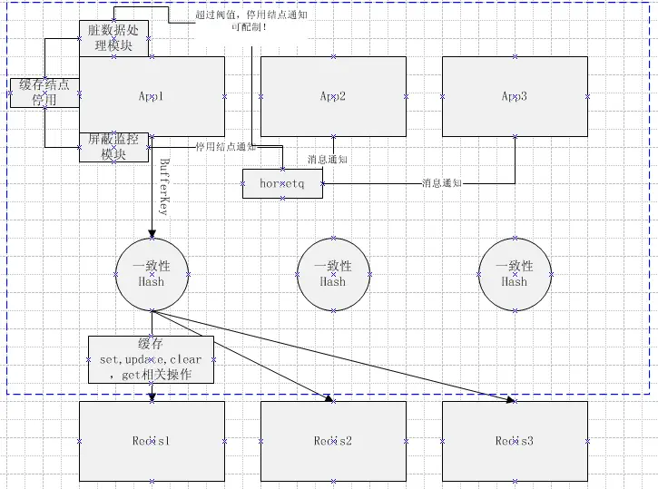 整个分布式模块通过hornetq,来切除异常redis结点。对于新结点的增加,也可以通过reload方法实现增加。(此模块对于新增结点也可以很方便实现)