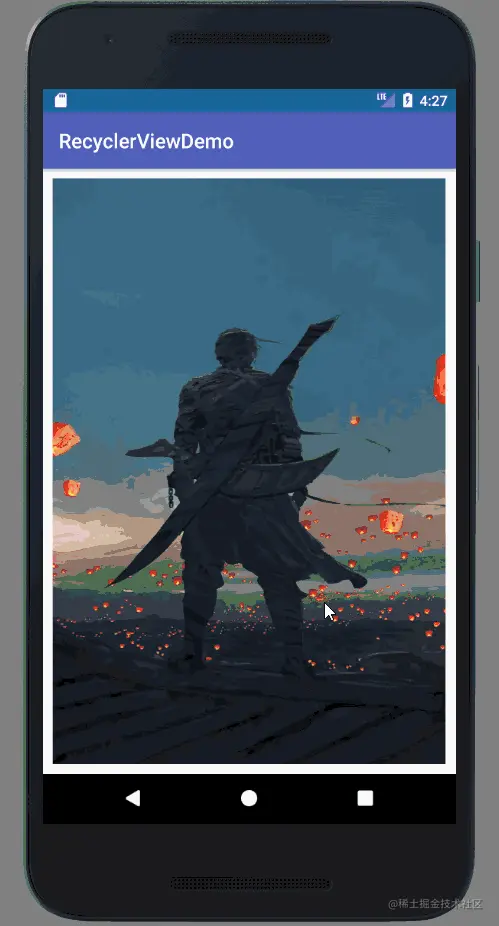 在之前的几张效果图中,其实是已经为 RecyclerView 添加了一条白色分隔线的