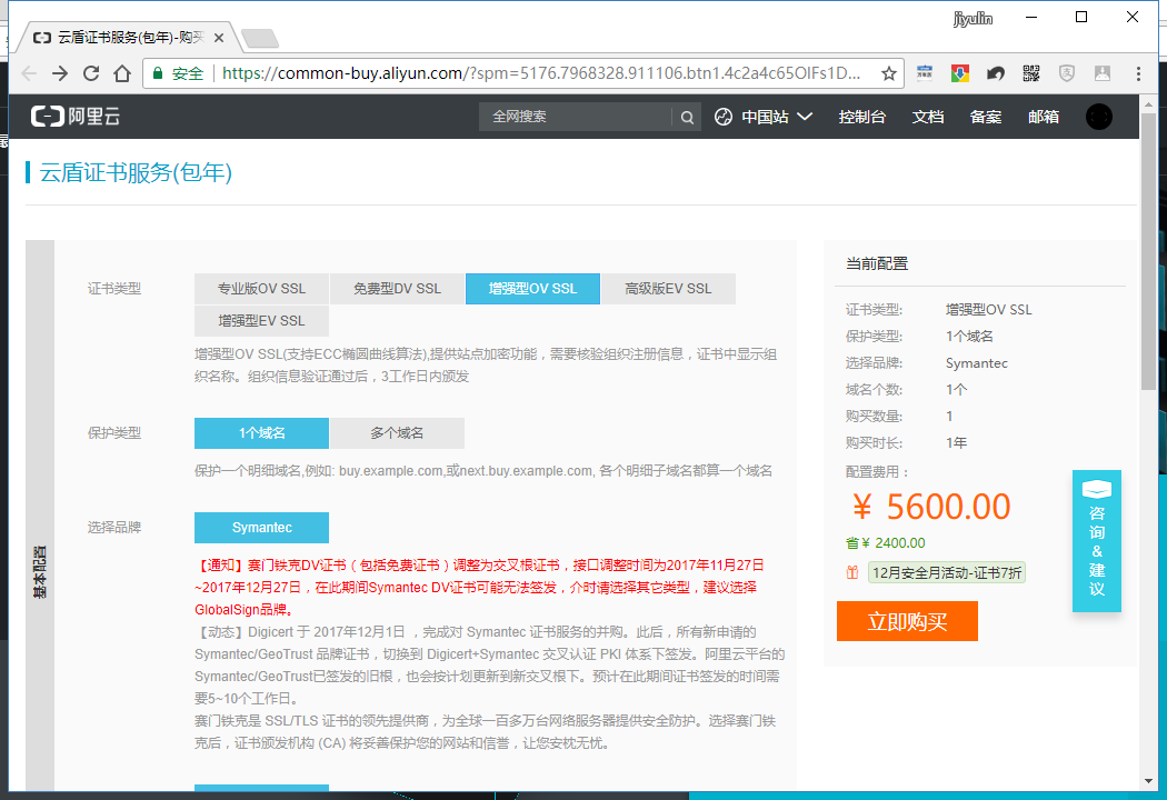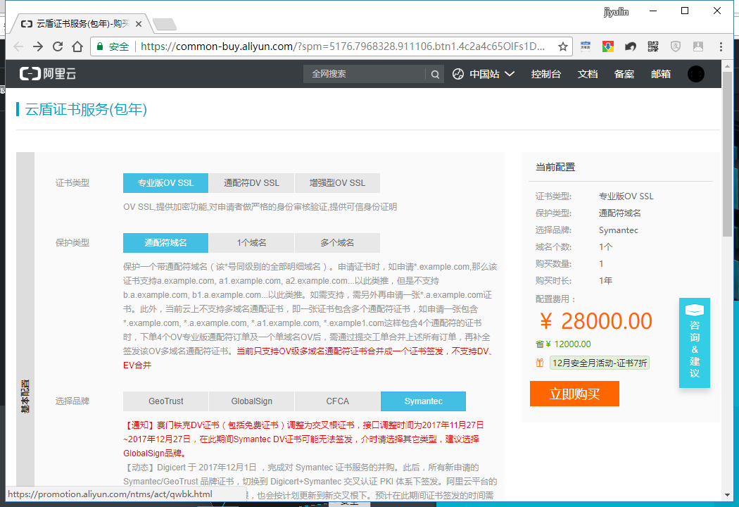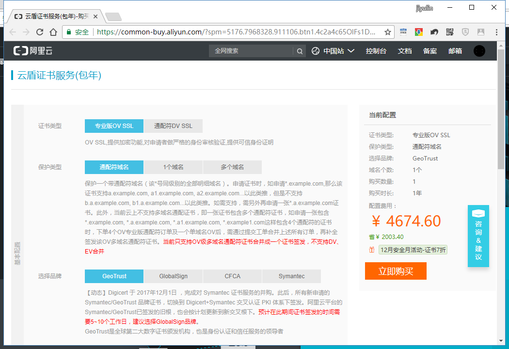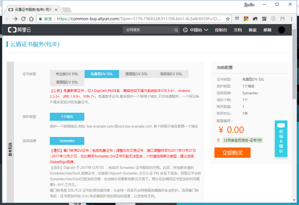 3,进入阿里云证书购买页面(common-buy.aliyun.com/?spm=5176.7…)