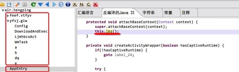 2.1主包解析: 首先将主包脱壳,拿到加固前代码。下图主包功能模块。