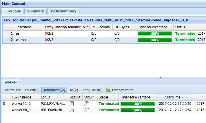 - 点击蓝色链接,可以在logview中查看对应每个worker的运行状态: