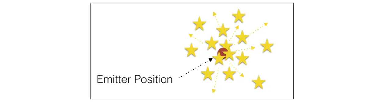 Point shape 一个发射器形状的kCAEmitterLayerPoint使所有的粒子在同一点产生:发射器的位置。这是一个很好的选择,包括火花或烟花: 举例来说,你可以通过在同一点上创建所有的粒子并在它们消失之前让它们飞向不同的方向,从而产生火花效应。