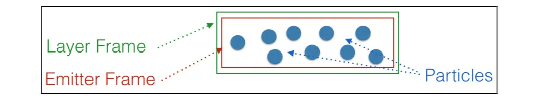 3、结合形状、位置和大小属性定义了发射器框架。将发射器的位置设置为该层的中心,并设置发射器大小等于该层的大小。