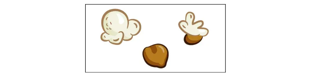 例如,在爆米花动画中,你可以有三个不同的细胞来代表爆米花核的不同状态:完全爆破,半爆,还有那些顽固的未爆玉米粒: