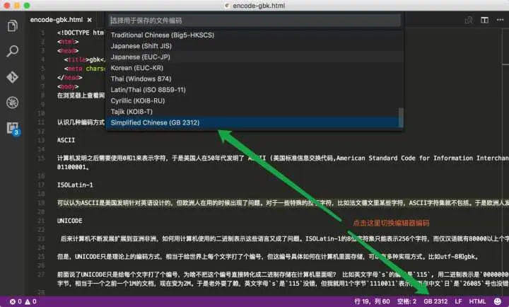 在第2步保持文件时会把我们写入的文字使用编辑器默认的编码方式进行保存。如果大家使用的是vscode编辑器,默认的编码方式是utf-8。