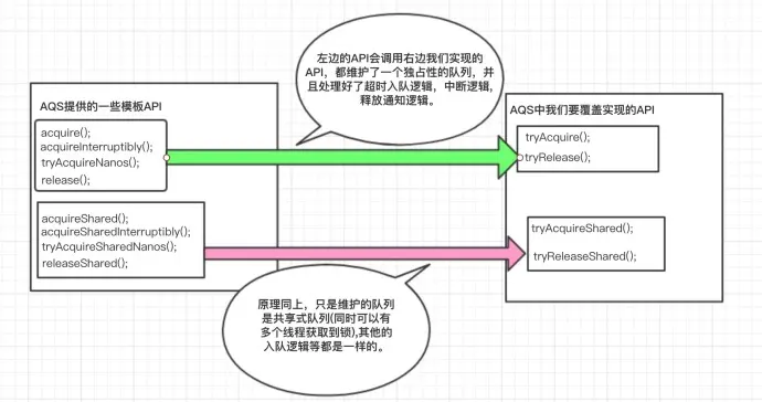 在上文的讲解Lock和AQS关系时,有一张图大致讲解了这些API的调用关系,本文作者决定再画一张,具体到AQS中具体API的对应关系: