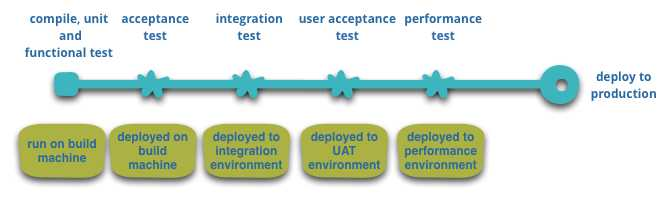 而后文的 Infrastructure Automation 一小节则提到了可持续集成与可持续交付,开发者通过自动化测试,自动化部署完成之后的工作。附上一张经典的pipeline示意图:
