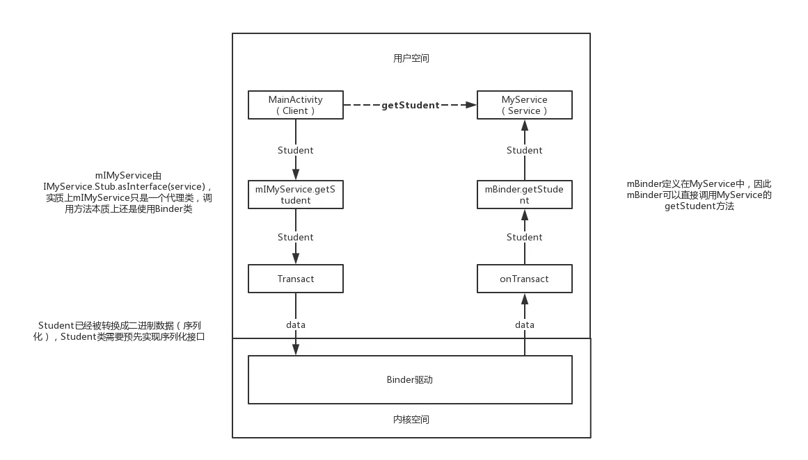 - Stub类:Binder的实现类,服务端通过这个类来提供服务。