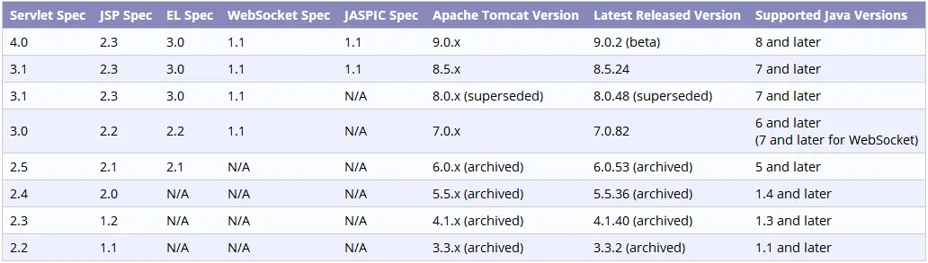 1,来源自Tomcat官网:tomcat.apache.org/whichversio…