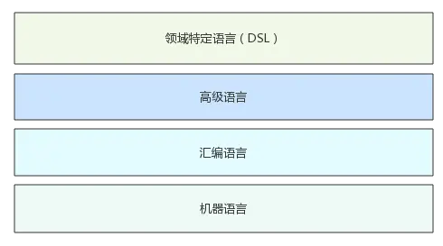 我们知道按照不同的抽象层次,计算机编程语言的抽象层次从高到低依次为,高级语言、汇编语言、机器语言。 抽象层次越高对人类越友好、表现力越强、执行性能也越差,与之相对的抽象层级越低对机器越友好、表现力越差、性能也越好。 而领域特定语言(DSL)在计算机编程语言的抽象层次中位于高级语言之上,实现DSL主要的目标是为了能够以更简单、更容易理解的方式完成我们的业务需求。为什么说抽象层次越高就越容易理解呢,就像这篇文章是站在一个比较高的层次讲DSL,并没有讨论过多的技术技术细节,所以理解起来也就不难。