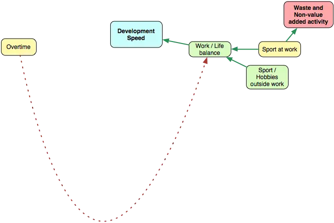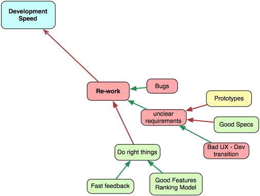 现在你可以看着图,然后问出这样的问题:『什么会增加开发的速度?什么会减少?什么会使我们开发软件更快,并且更好?』这个模型也许不是十分完美,但是无所谓。你可以修改它。