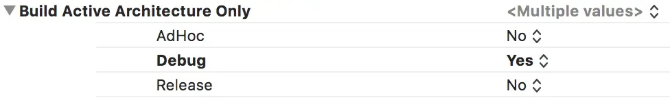 3、Debug 时只编译 active 架构(Build active architecture only)