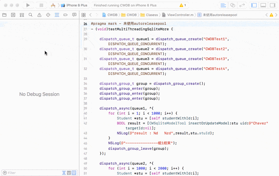 // 2017-12-23 16:25:46.145023+0800 CWDB[14678:1604328] 开始插入数据