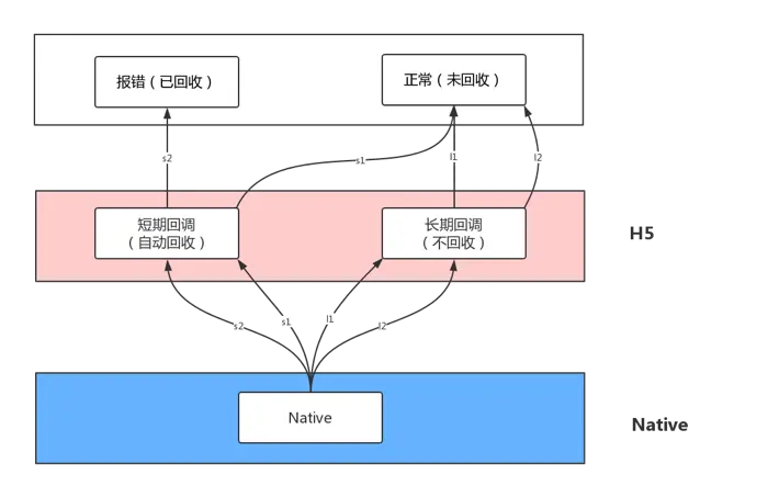 在回调执行阶段,如果是短期回调,会自动删除引用,方便垃圾处理器自动回收(里面会保证短期id和长期id不重复)