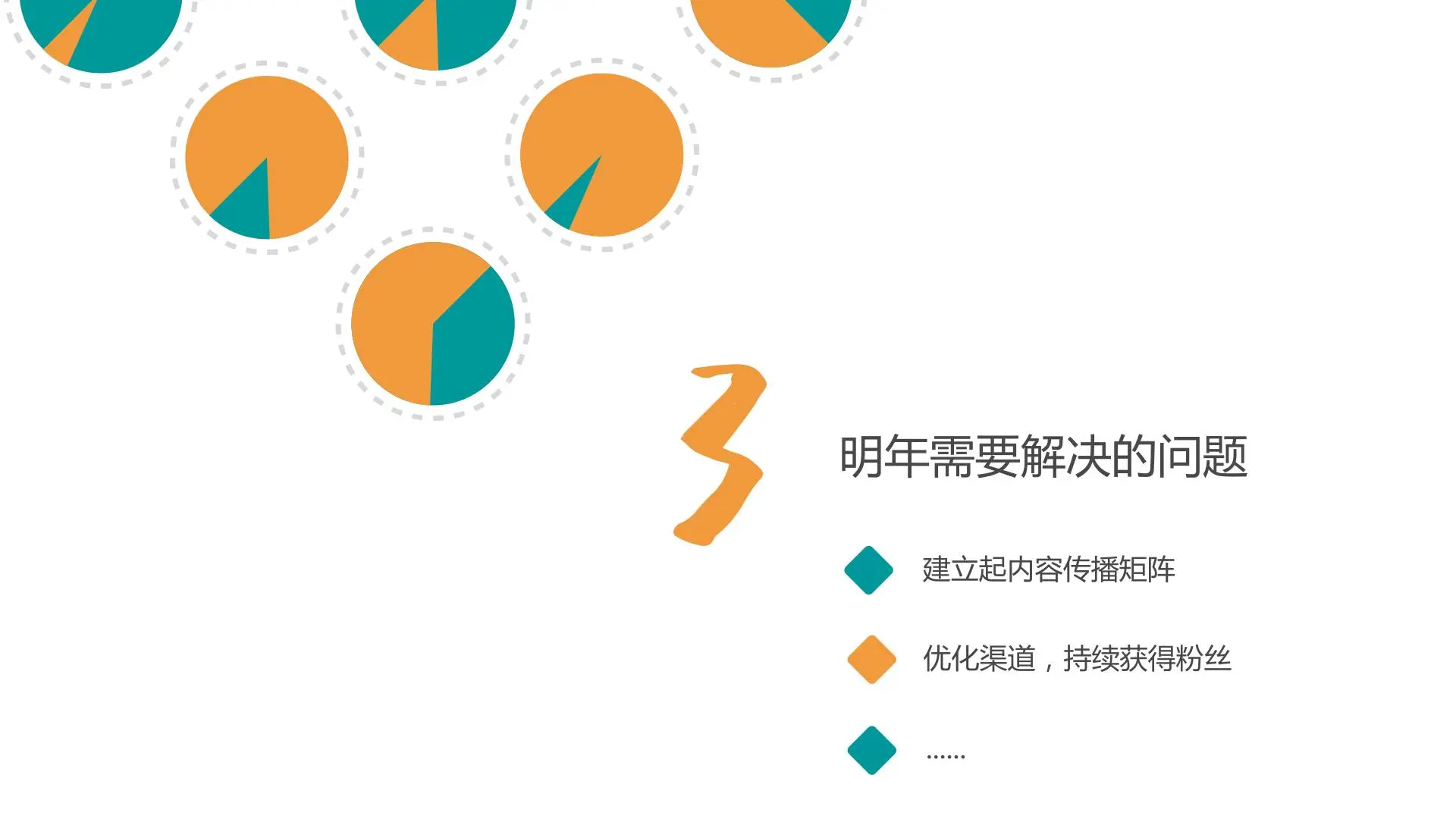 确定明年需要解决的问题,要分解到每个月份工作规划:建立起内容传播矩阵,优化渠道,持续获得粉丝,提高转化率。