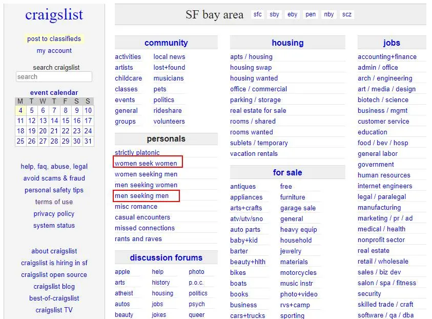 美国的Craigslist网站(这个类似国内的58同城网站),同性恋们认为在这个网站寻求联系特别有用。