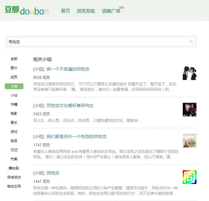 除此之外,豆瓣、微博、bilibili、飞赞等这些网站社区存在着不同兴趣分组的同性恋社群。