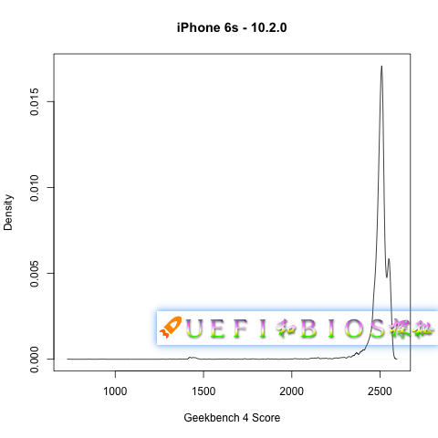 上面两个图是KDE图(Kernel density estimation),横轴是GeekBench4在iPhone 6s的Benchmark数据,纵轴是密度。