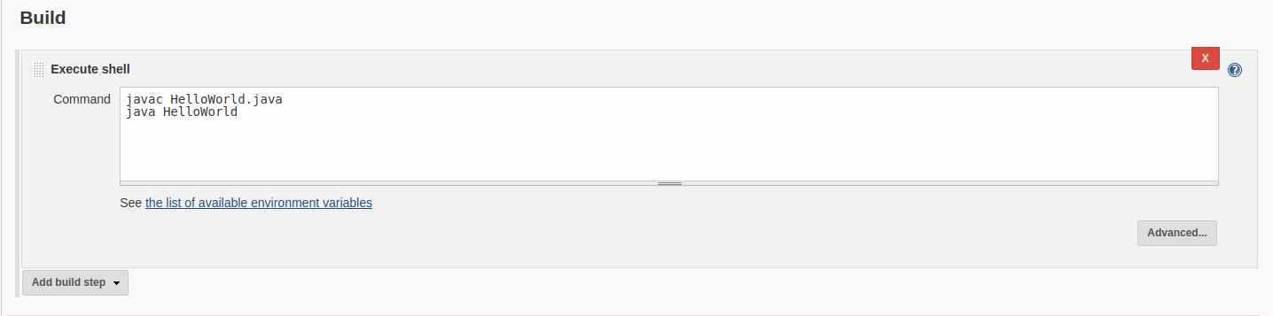 第4步 在Build一项,Add build step选择Execute shell,在Command里写入