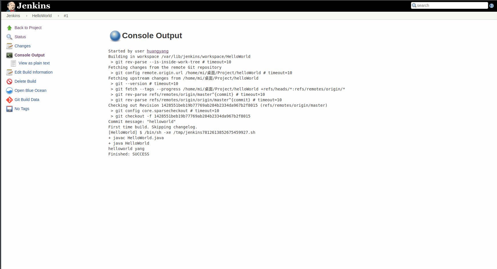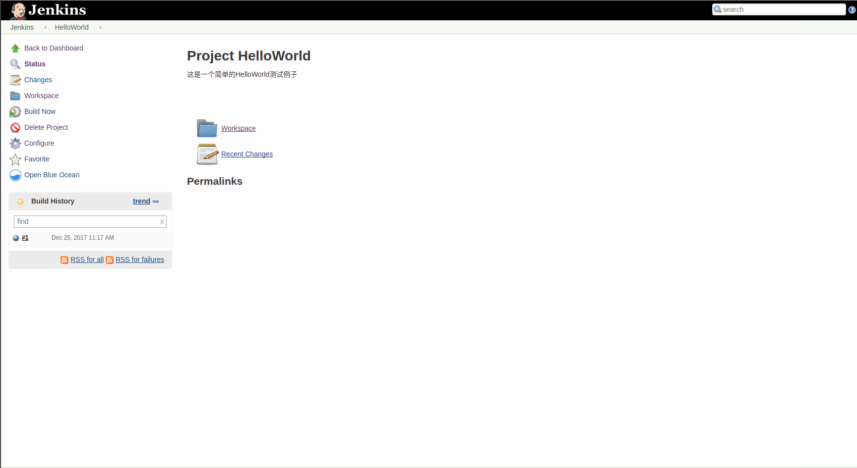 Build History多出来点东西,点击进去,如果你像我一样构建成功了,那么应该会看到这个蓝色的小圆球