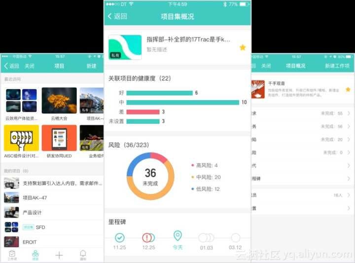 移动端工作台连通日常工作的网页端与钉钉企业版,既提供了单个工作任务的多种操作,也支持整个项目和项目集合管理,使得用户可以更加便捷跟进工作。